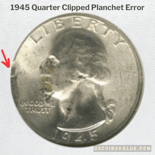 Auction records show that 1945 quarters with a clipped planchet error can sell for $41 or more.