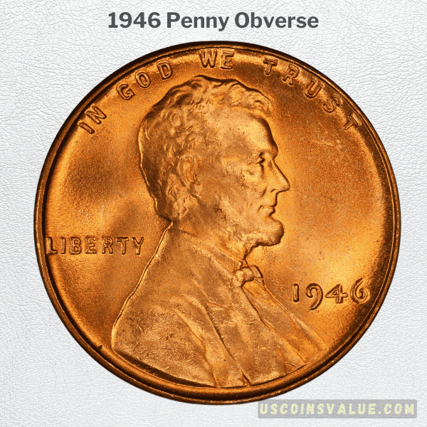 On the obverse, the coin bears Lincoln’s bust in a right-facing position. The motto, “IN GOD WE TRUST”, is inscribed in an arc above the President’s head, while the word LIBERTY appears on the left, to the back of Lincoln’s image. The mint year, 1946, and the mint mark, “D” or “S”, appear on the lower right.